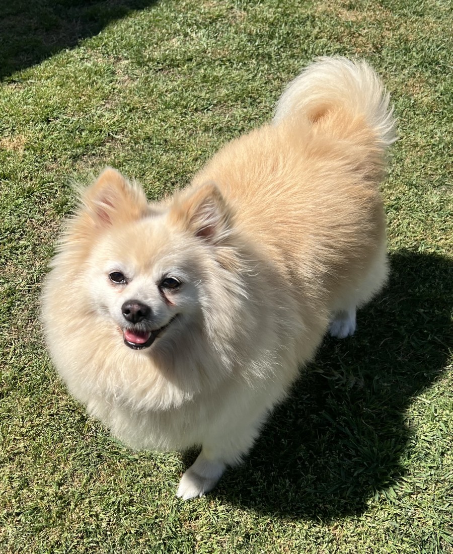 Daisy is house-trained and uses a doggy door with ease. She’s also dog-friendly, making her a lovely companion for homes with other pups. Most of all, Daisy thrives on love, attention, and—of course—her favorite thing: food!