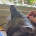 Sweet Aldo has continued to gain in confidence every day. He's decided he'll take a good head scratch whenever he can get it, he's learnt to play with toys, and he's even started to enjoy cosying up on the couch with his foster human - giving himself away as quite the purrer!