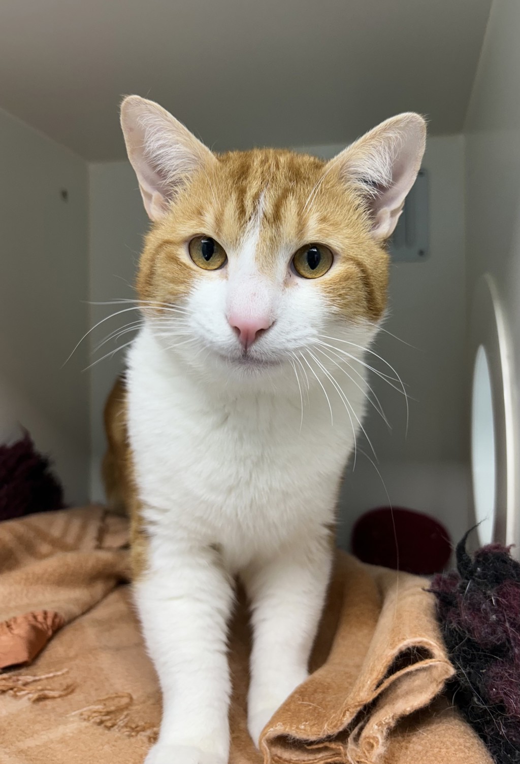 Because of his white features, it's essential that Ginger remains an indoor-only cat to protect him from the sun. He'll thrive with cozy hideaways, enrichment toys, and a peaceful environment where he can truly feel at home.