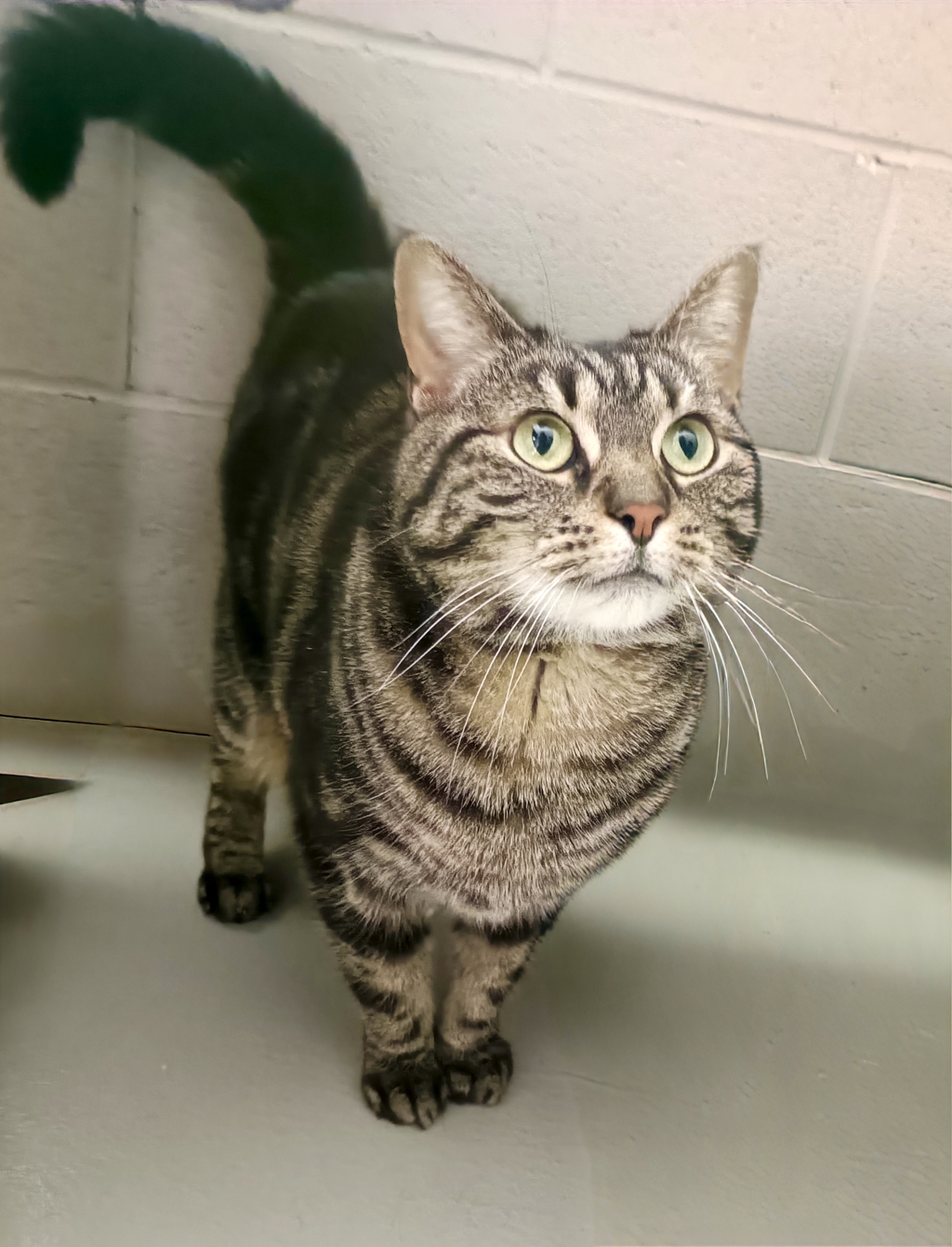 Muffin is a four-year-old female tabby with a loving, inquisitive spirit. She thrives on affection, adores cuddles, and will happily follow you around seeking your company. A bright, playful girl, Muffin loves interactive toys and exploring every cozy corner of her home.