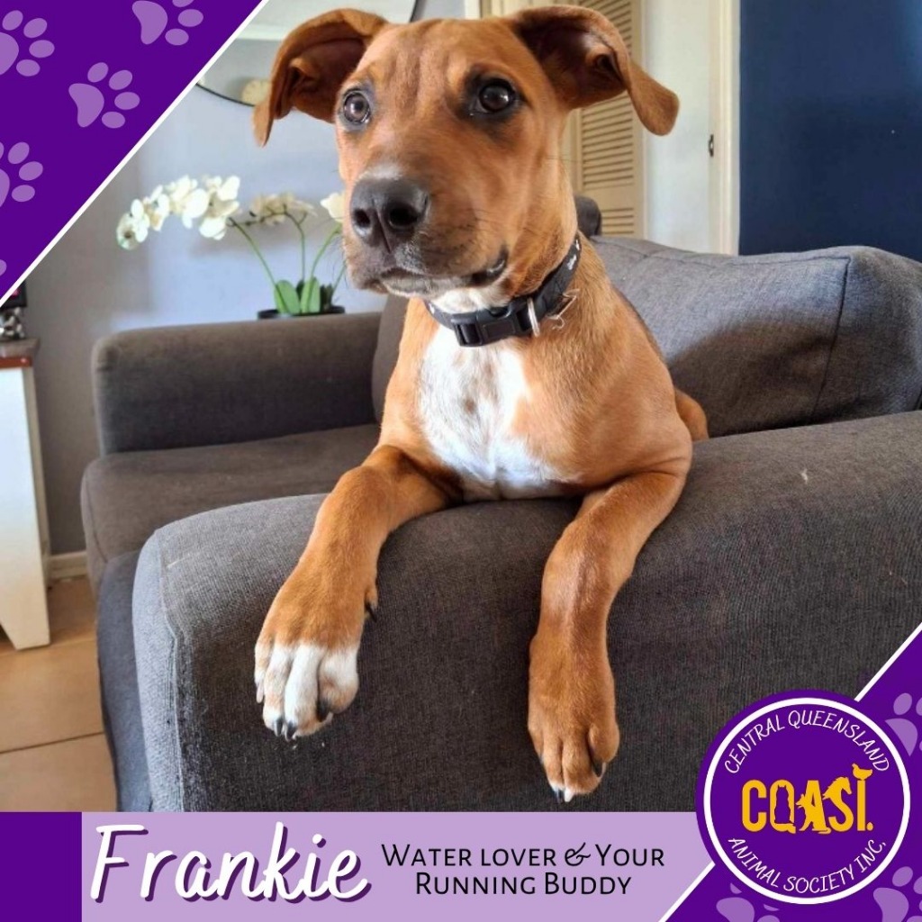 Hi, I’m Frankie – your future running buddy, water splasher, and crate-loving cuddle queen!