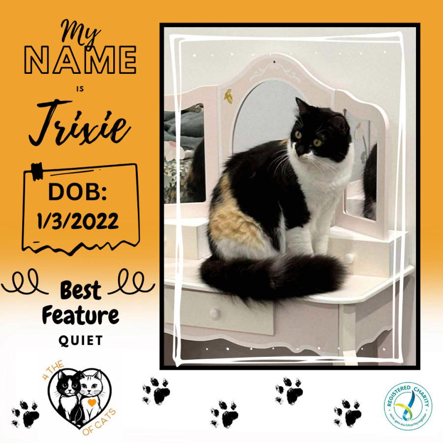 Trixie deserves someone who will give her the chance to blossom. In return, you’ll gain a loyal friend who chose you just as much as you chose her. Sometimes the shyest hearts make the most devoted companions.