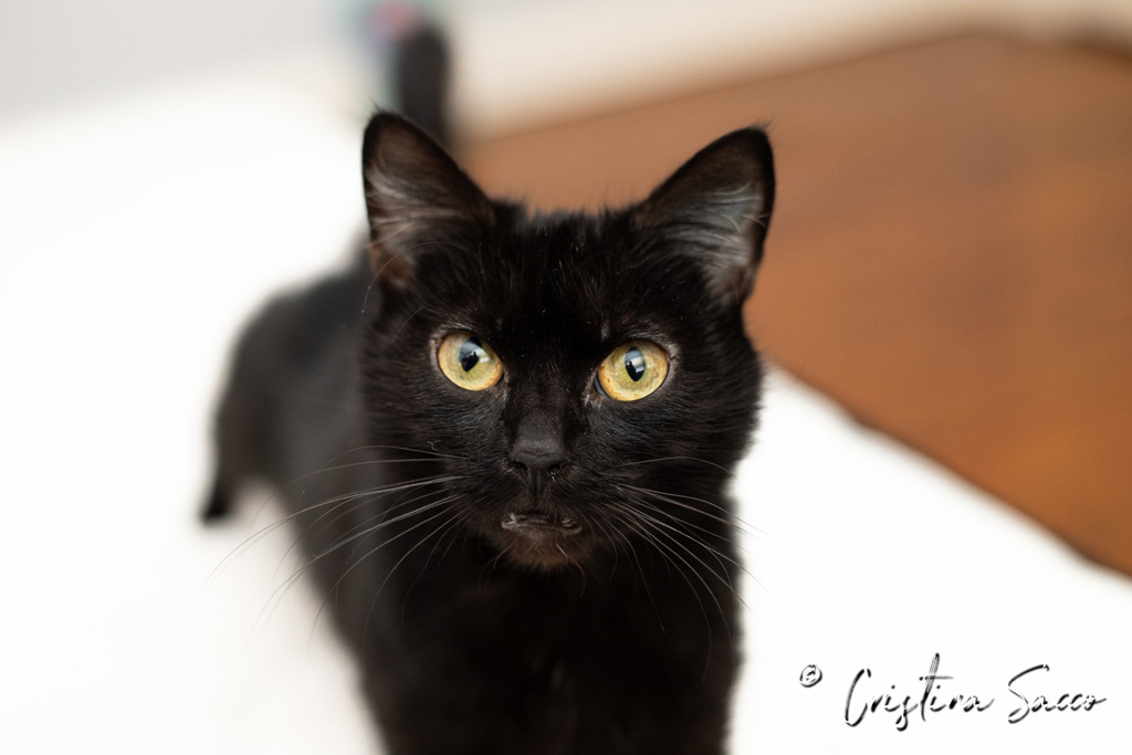 Zoe is a sweet and talkative kitten who is just so excited to be in a loving foster home. She loves to have a little chat when you say hello and looks at you lovingly with her big dark golden eyes as she comes in for headbutts. She tends to wiggle with excitement when she is super happy.