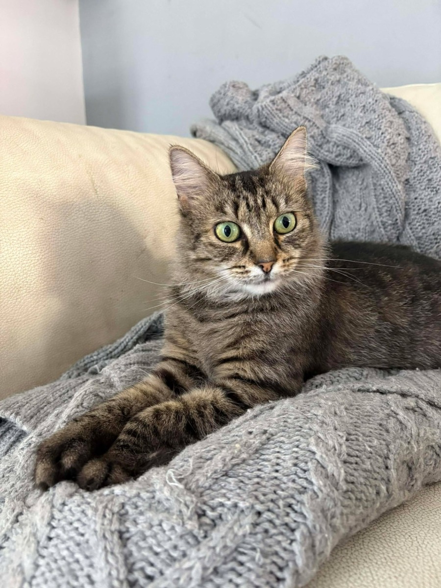 Girlie recently nurtured three healthy, happy kittens with grace, proving herself to be an exceptional mother. Her maternal instincts extend to those she loves, as she offers endless companionship by following you everywhere, and she never hesitates to engage in a little heartwarming, chatty conversation.