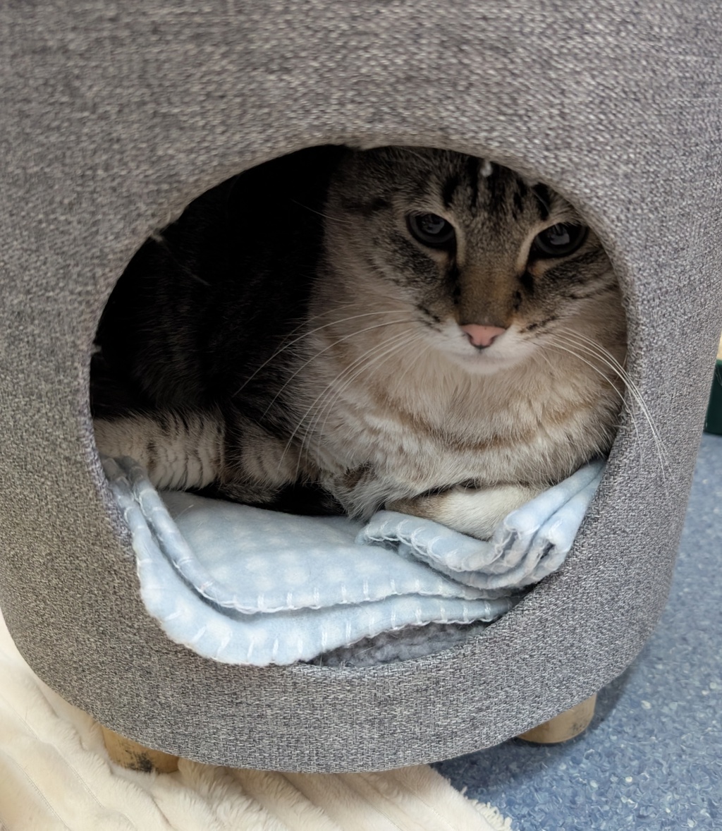 Cali is a sweet, 7-year-old tabby with a soft heart and a few extra pounds of love. This charming lady enjoys the quiet life and is looking for a calm, patient home where she can feel safe and take her time getting comfortable.