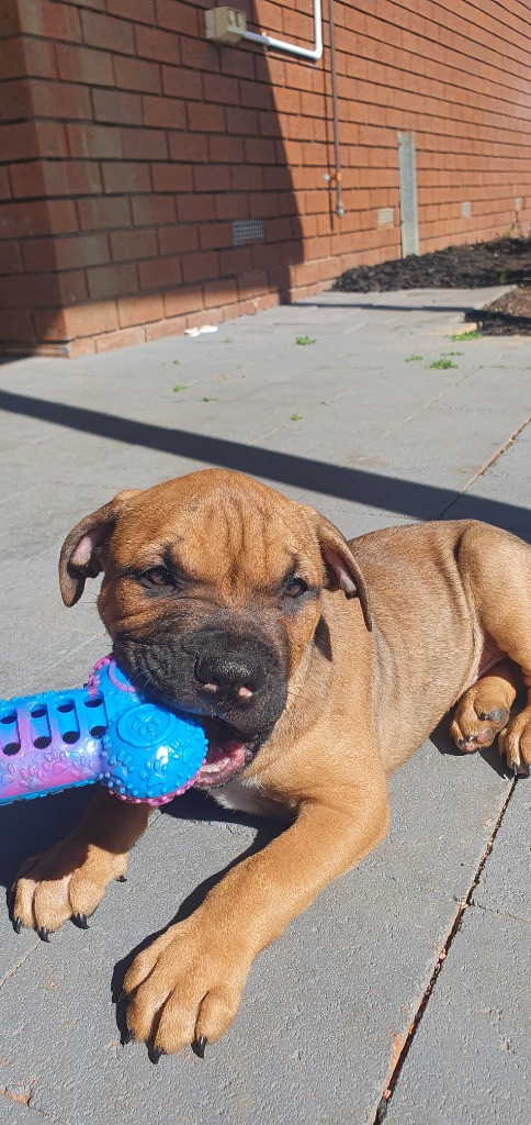 Say hello to Flynn, a deliciously handsome brown Staffy pup with a personality as rich and warm as his beautiful coat. Born in care with his 10 siblings, Flynn is a total sweetheart — affectionate, playful, and always ready for a cuddle.