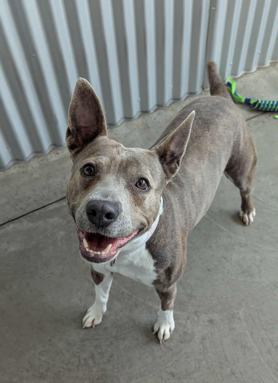 Since being at the facility, Ruby has been an incredibly affectionate & sweet girl. When she gets super excited she bounces around in circles and play bows, all while her tail is helicoptering. She knows how to "sit", but usually requires bribery with food/treats.
