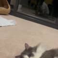 Grey-and-white Barney seeks out human company a little more than his black-and-white brother. A cuddle session with Barney is never a static activity. He’ll roll over for a belly rub, seemingly forget why he’s lying down, walk away, and then flop over again. A very quirky boy :)