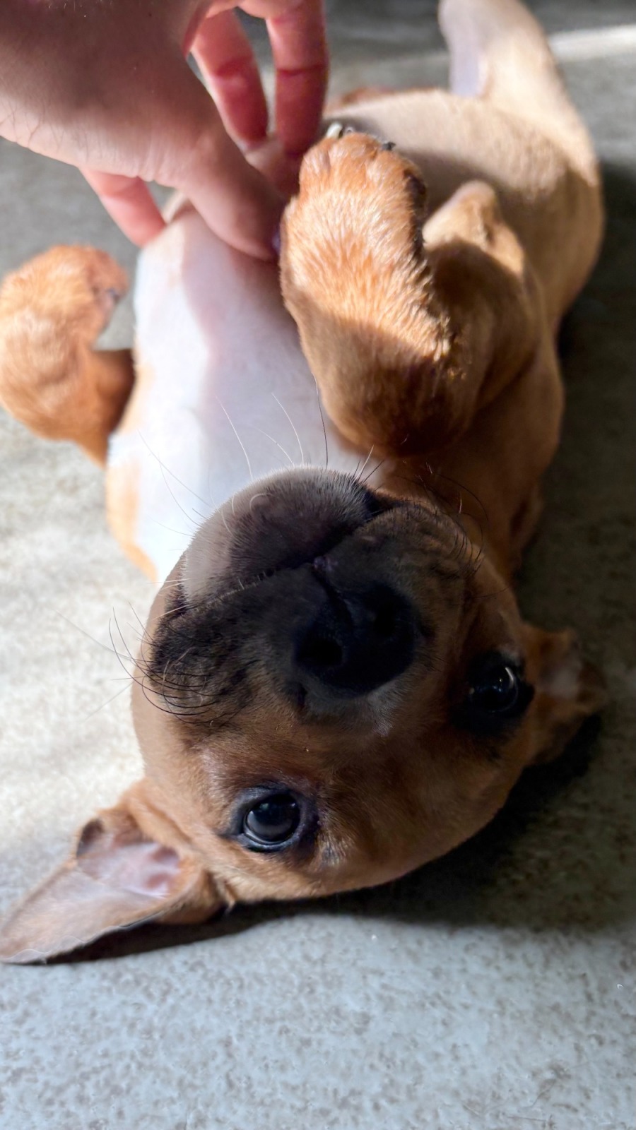 Clementine adores belly rubs! She embodies the quintessential Staffy trait of seeking love and attention 100% of the time. Although she may be a bit shy initially, she quickly warms up and stays by your side as a loyal and devoted partner. All she wants is a family who can match her enthusiasm and shower her with never-ending love and affection.
