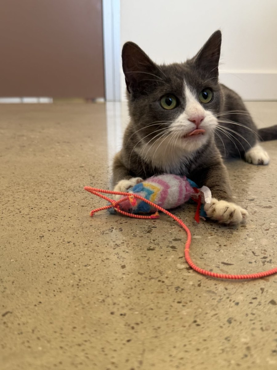 Lolly is a lively 7-month-old female kitten bursting with playful energy and curiosity. She absolutely adores her toys—whether it’s chasing a feather wand, pouncing on a ball, or stalking a little mouse toy, she’s always ready for fun. But she’s not all play; Lolly is also incredibly affectionate and loves spending quiet moments with her humans, curling up on laps and giving gentle head bumps. Her sweet nature shines through in everything she does, making her as delightful as the candy she’s named after. With her soft purrs and warm snuggles, Lolly is sure to bring endless joy and sweetness into any home lucky enough to welcome her.