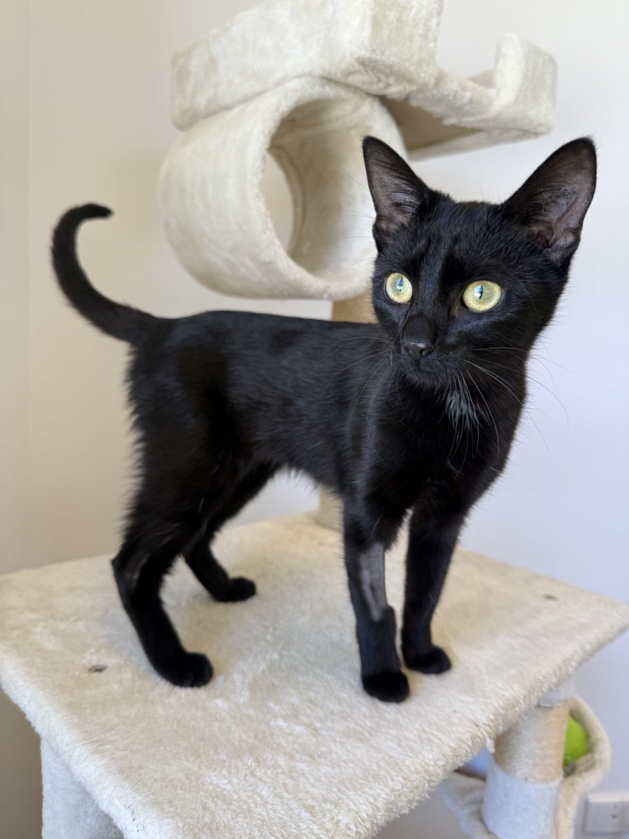 Cleo is a 7-month-old female kitten with a big personality and an even bigger voice. She’s confident, curious, and always ready to chat—whether she's asking for attention or just saying hello. While toys are fun, Cleo would much rather curl up in your arms for a cuddle. She’s happiest when she’s close, purring loudly and soaking up all the love she can get.