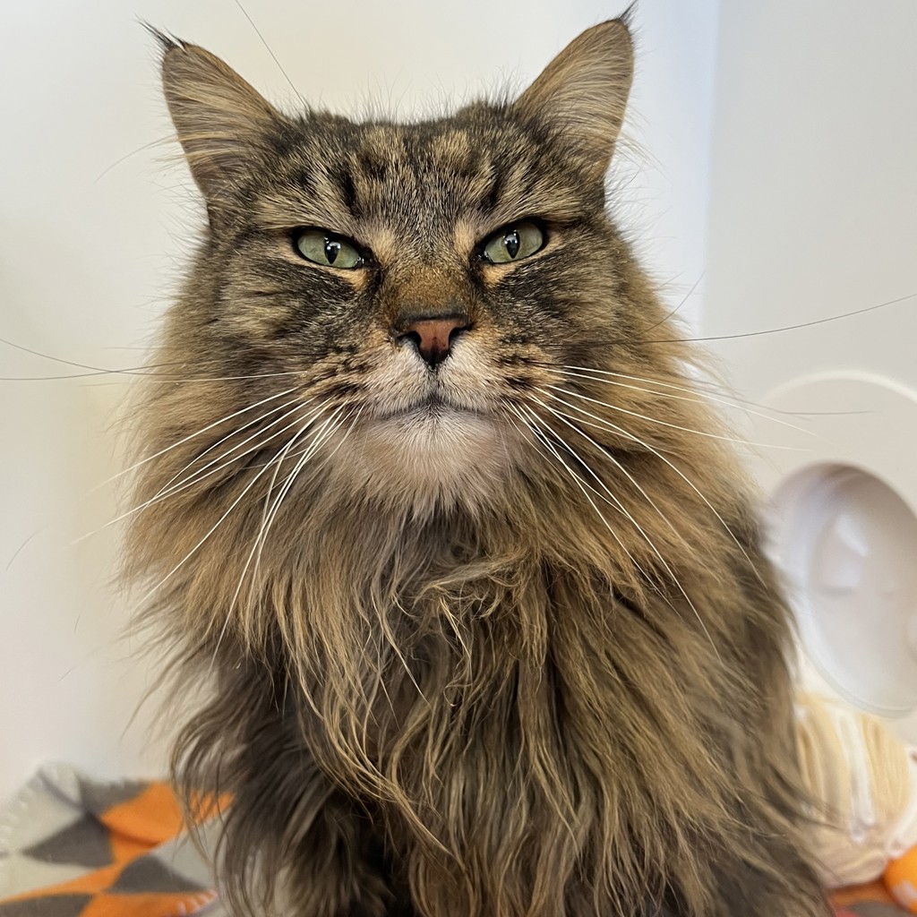 This majestic boy isn't just a cat - he's a lion-hearted companion with a soft spirit. Castiel is a male cat who turns heads with his regal looks: a fluffy mane that gives him the appearance of a little lion, and big, bright eyes full of curiosity and calm.