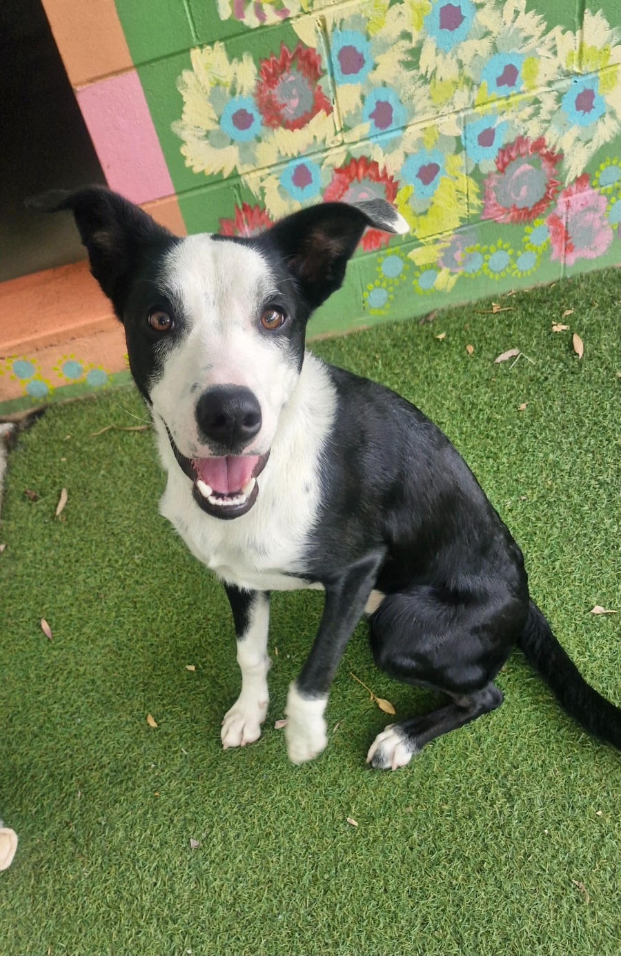 Salty is a short-haired, black and white Border Collie with a big heart and even bigger energy. Highly intelligent and eager to please, Salty thrives on mental stimulation and physical activity, making them the perfect companion for an active person or family.