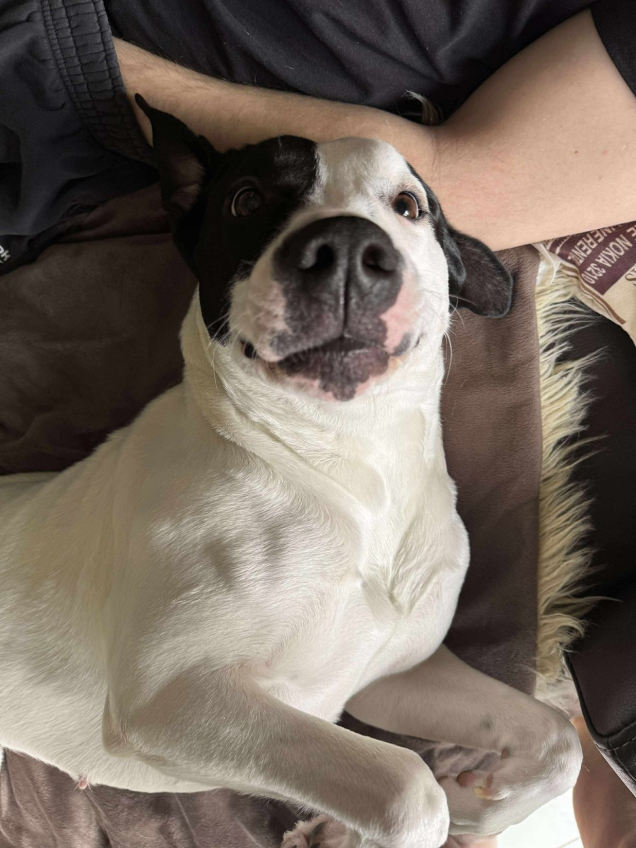 Sasha is the ultimate homebody with a big heart — she absolutely adores being around her humans. Whether it’s cuddling on the couch, playing in the yard, or going for a ride, she’s happiest when she’s part of the action. She’s incredibly loving and expressive — plenty of kisses and endless enthusiasm!