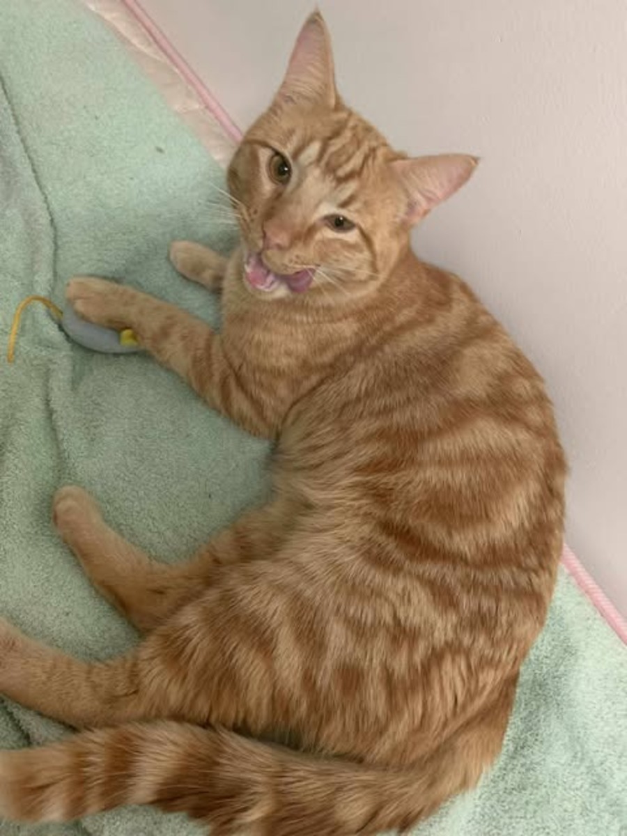 Meet Tiger, the gentle ginger feline with a heart as warm as his fur. This little guy is the perfect balance of independence and affection, offering a unique companionship that is both endearing and rewarding. While Tiger enjoys having his own space, he's known to transform into a smooching sweetheart once he feels settled and secure. Blessed with soulful eyes, Tiger has a way of capturing your heart slowly but surely, making him an ideal companion for those who appreciate the quieter, more thoughtful side of feline friendship.