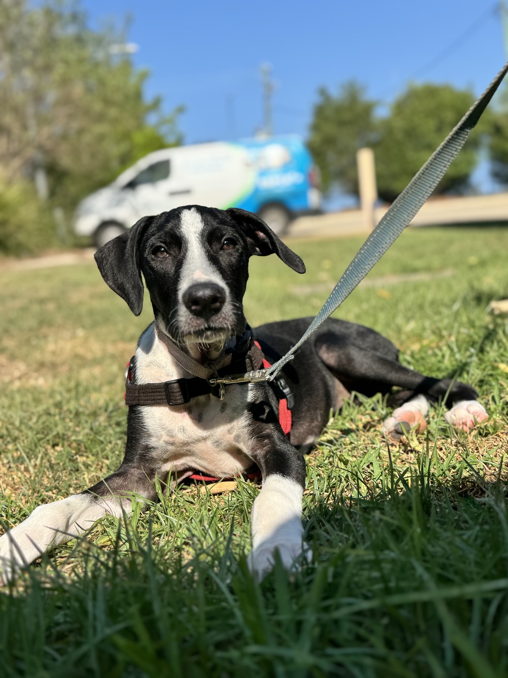 I'm just a puppy, but I'm already a big girl! I'm full curiosity, I enjoy going for a walk and exploring every nook and cranny. I can be pretty playful, I spent some time in foster with my sister, and boy, do we play rough, but I'm always gentle and chill afterward, ready for a cozy nap! But I'm really just a chill girl at heart, who wants to laze around with you and go on gentle walks. I am still a pup though so you will need to continue my training so that I can be the bestest girl! I'd be happy to live with another dog so if you have another doggo then I'd love to meet them first! So, if you think we make a perfect match then come meet me today!