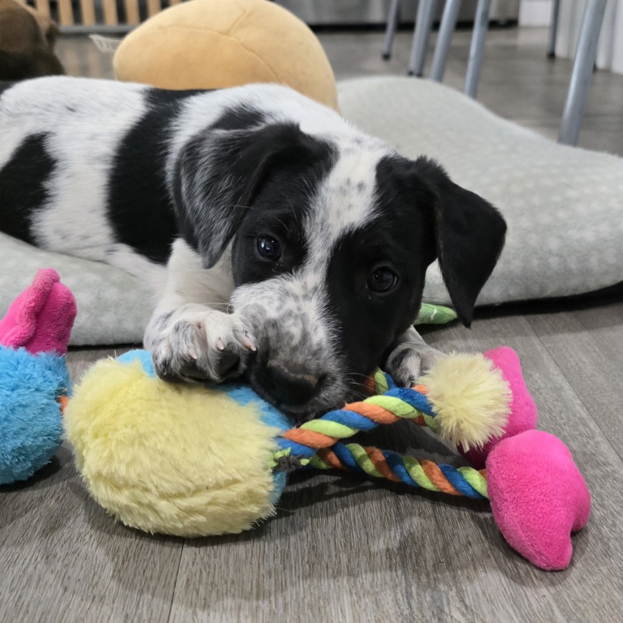 Cheeky, fun and full of sass — Kim has the boldest personality in the litter! She loves to play, explore and show off her silly side. Kim is a quick learner and adores people, especially if it means belly rubs or a treat. She’s social and affectionate, a bright spark who’ll bring laughter and energy to her new family.