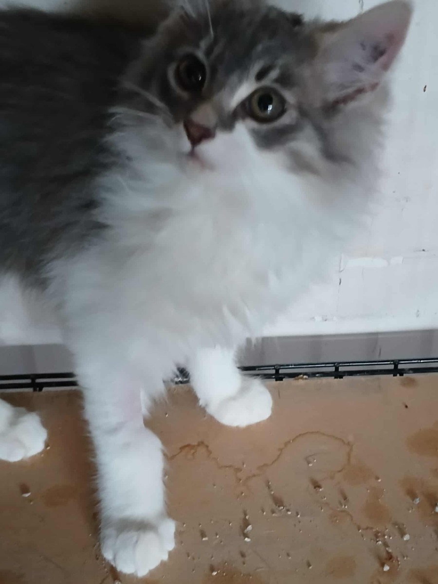 This stunning boy is a grey and white ball of fluff. Not only is he beautiful to look at but his beauty is also matched by his loving nature!
