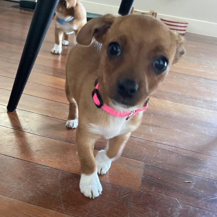 Ginger is gaining confidence every day as she explores the world around her She's a clever little pup who sleeps soundly through the night and is making great progress with her toilet training. Her love of food definitely helps with learning new things.