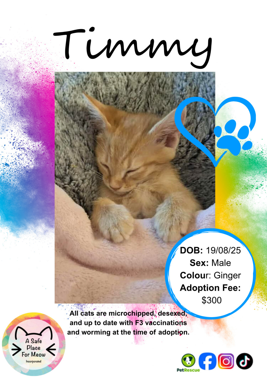 Meet Timmy, a delightful companion with a heart full of sweetness. This adorable feline is as affectionate as they come, exuding warmth and charm every step of the way. Timmy has a fondness for cuddles that would undoubtedly melt your heart, and his gentle purring is the perfect soundtrack to a cozy day spent together.