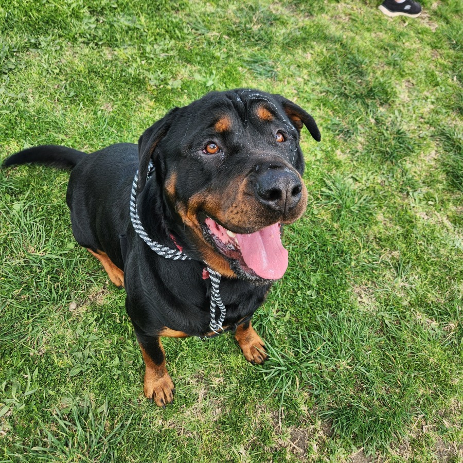 Jayjay is a handsome Rottweiler mix with a big personality and an even bigger heart. He came to GAWS after his previous owners could no longer manage him, and he's now ready to find an experienced Rottweiler owner who can give him the structure, love, and attention he deserves. Friendly, affectionate, and endlessly loyal, Jayjay adores everyone he meets and forms strong bonds with those he knows best. True to his breed, he's smart, strong, and sometimes a little cheeky - which only adds to his charm! Jayjay would thrive in a home with adults or older children aged 12 and over, as he can be a bit boisterous in his excitement (and doesn't mind showing his love with a big jump or a slobbery kiss!). He enjoys his daily walks and, while strong on lead, walks beautifully on a halti harness and tires quickly after some exercise. He can be a little unsure and overwhelmed around other dogs, so Jayjay will need to be the only dog in the home to ensure he remains the centre of attention. With careful guidance, he can continue learning positive social skills around familiar, calm dogs - though dog parks, beaches, and daycare aren't his scene. Jayjay hasn't been tested with cats, but he's already mastered many of his basic cues and is always eager to learn new tricks, especially when treats are involved. If you're an experienced Rottweiler lover looking for your next loyal companion, Jayjay is ready to fill your life with love, laughter, and plenty of cuddles. Jayjay is currently 58kg and will need owners who can physically handle a dog of this size.