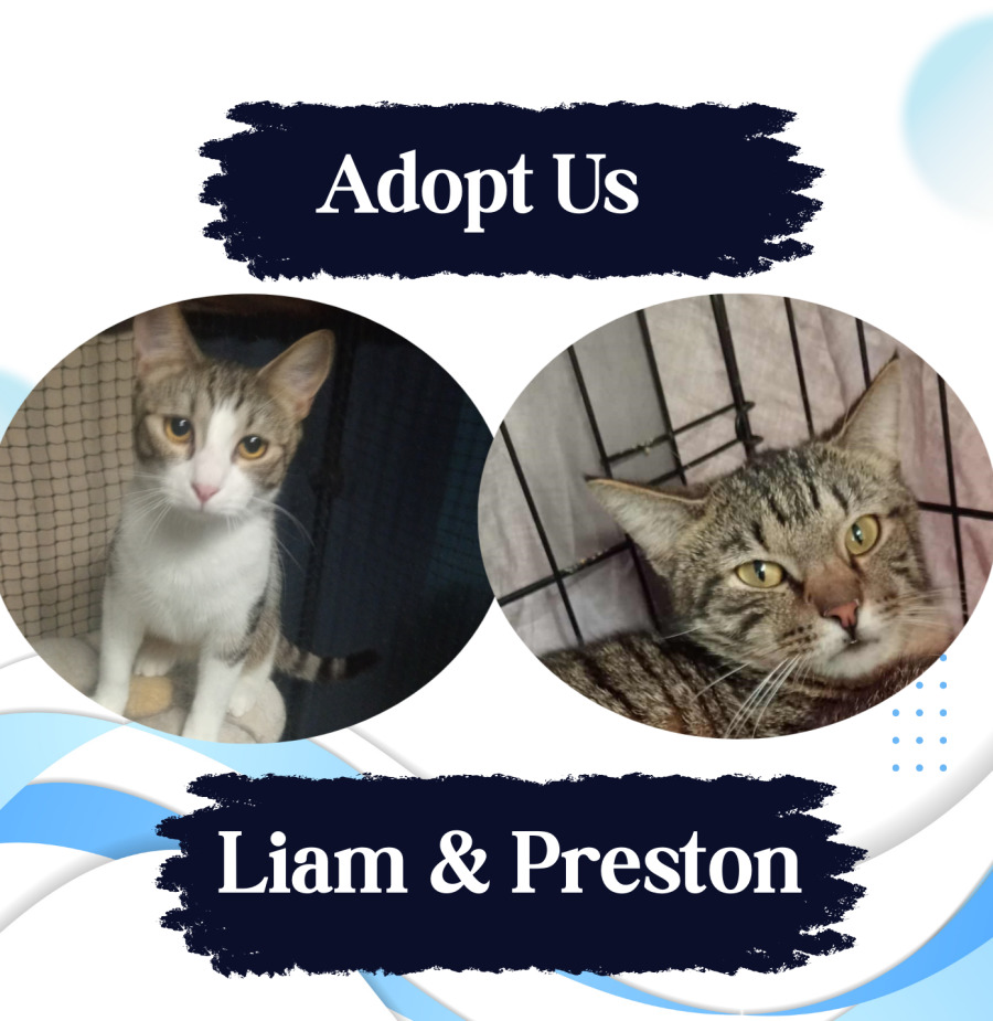 Meet Liam and Preston, a playful pair of feline friends, ready to bring double the joy (and trouble) to your home. These two are not only adorable but also full of personality and charm, making an unforgettable duo that will capture your heart.