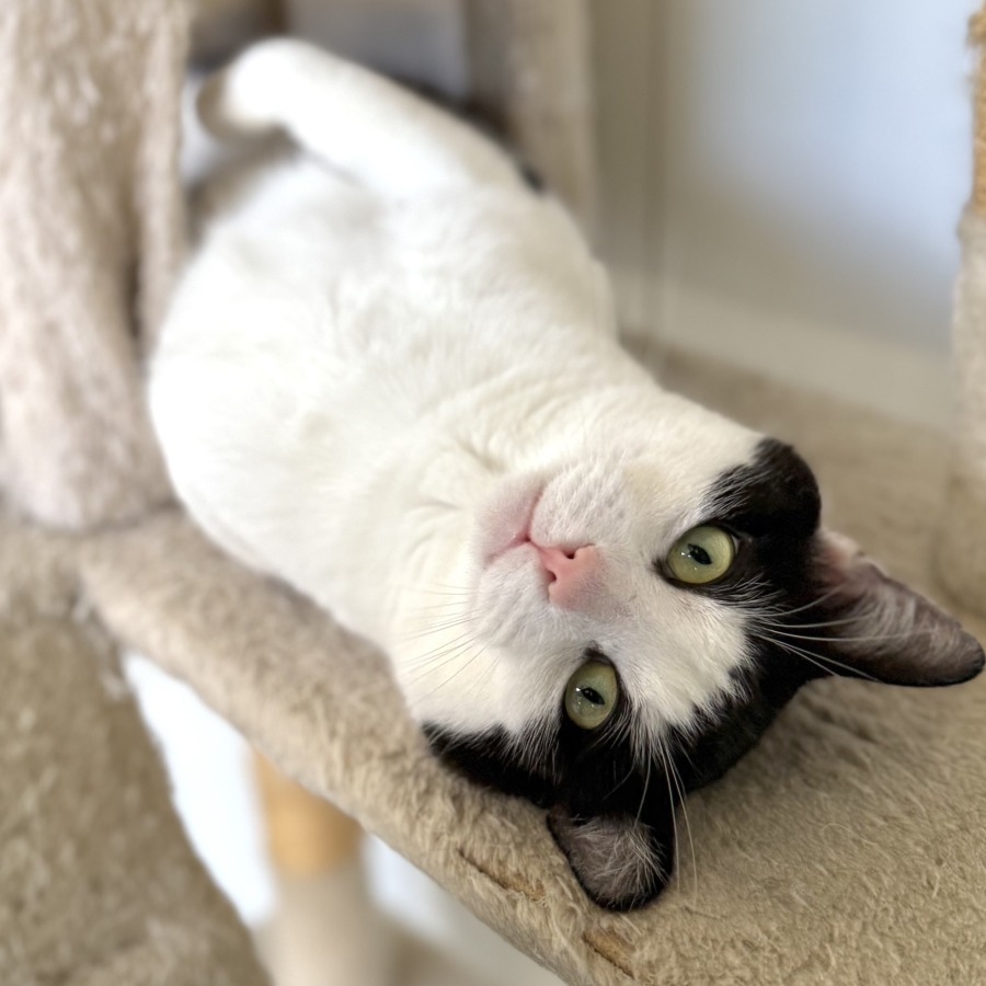 He’s looking for a quiet home where he can feel safe and secure. No kids and no other pets, please — this lad wants to be your one and only. He’s FIV+, which simply means he’ll need to live indoors and have regular vet care, but he can still enjoy a long, happy life with the right person by his side.