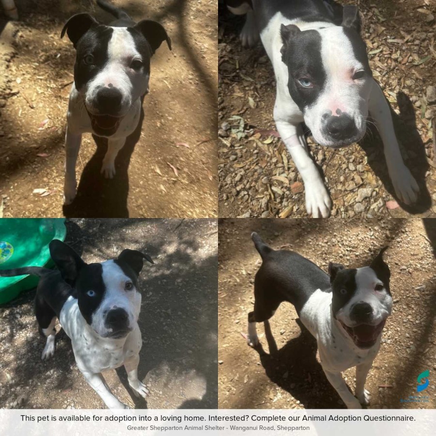 Say hello to Checkers, our handsome black and white Staffy with a show stopping feature one bright blue eye and one warm brown! This unique boy turns heads everywhere he goes, and his personality is just as special as his look.