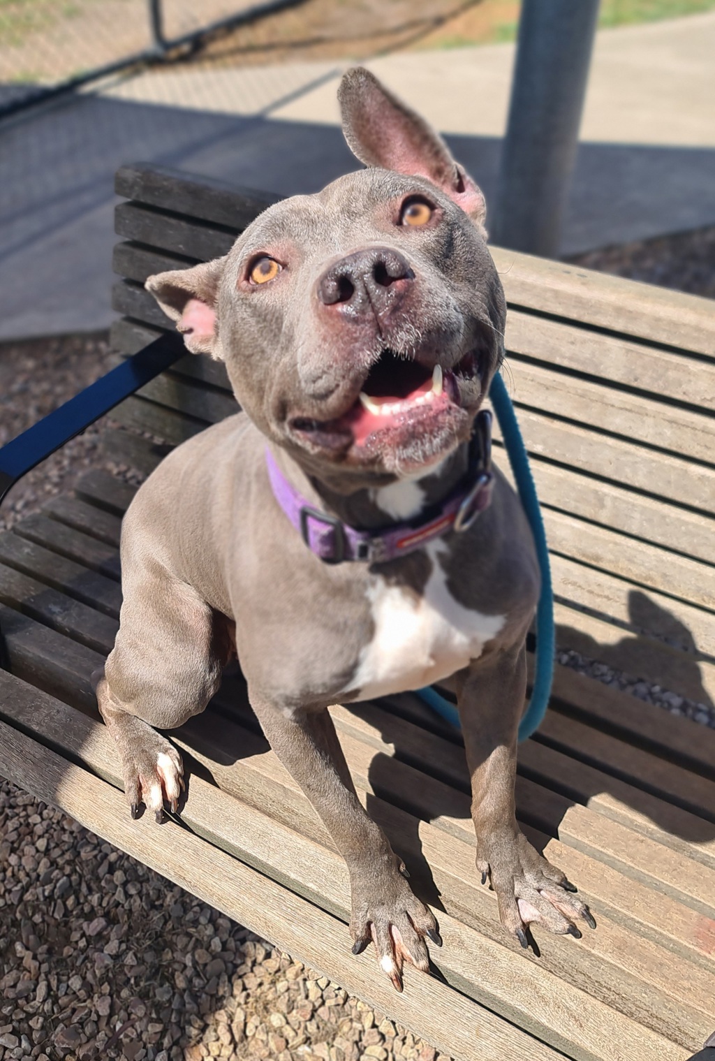 This gorgeous 3.5-year-old Staffy cross is as lovable as they come! Luna is a social butterfly who adores both people and other dogs. Whether it's playtime in the yard, a walk around the block, or a snuggle on the couch, she's happiest when surrounded by her favourite humans (and a few furry friends too!).