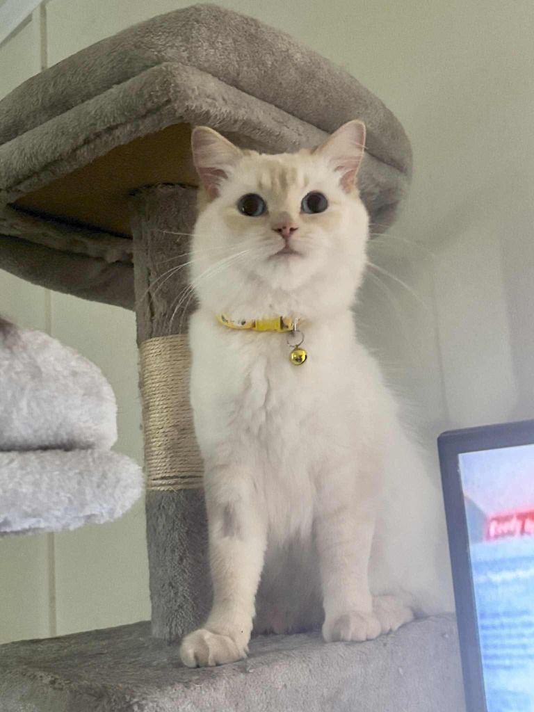 I am a princess flame point ragdoll who prefers to do things on my own terms, so please don't pick me up; these four paws were made for walking. I have a pleasant purr and a lovely coat, so a brush would be useful to prevent matting.