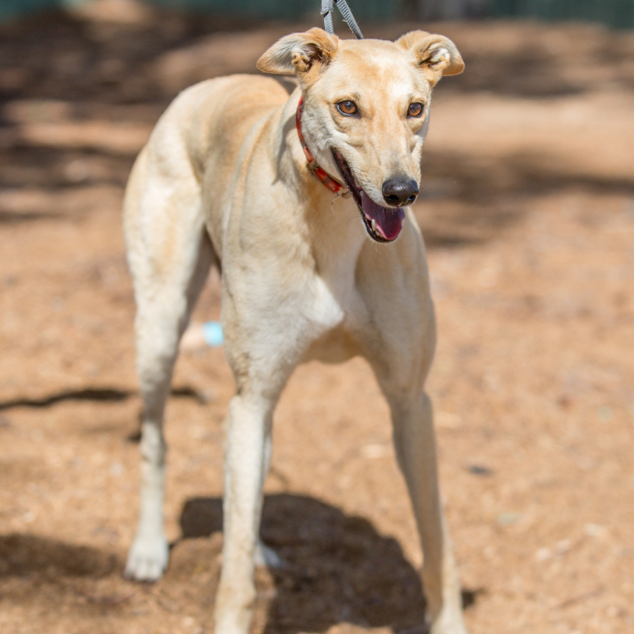 Meet Stumpy, the adorable 21-month-old greyhound who's as sweet as can be! This little gem was born without a tail, making her one-of-a-kind. With her youthful energy and puppy-like charm, Stumpy is a bundle of joy. Despite being tiny in size, her personality is larger than life - friendly, personable, and always eager to please. Stumpy can get a bit anxious, but she's always willing to try, making her a lovable companion. Get ready for a lifetime of snuggles and smiles with this pretty little greyhound! Stumpy may suit living with or without a canine friend of any size and children aged 10 years and older.