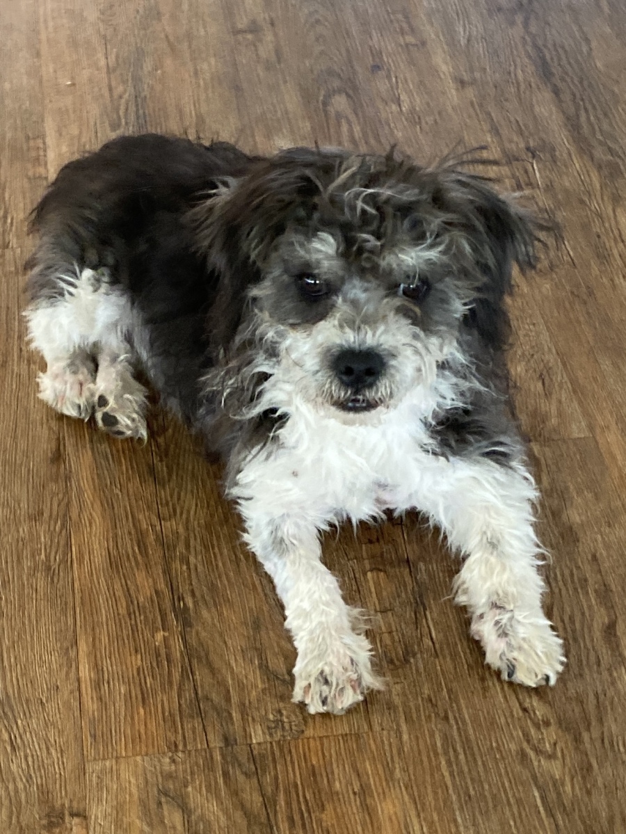 Dusty loves toys and playing with the other small dogs in his foster home. He’s not all bothered by large dogs either. He’s only met older children since he’s been here and has been fine with them. Oh and he’s cat friendly, with our three cats.