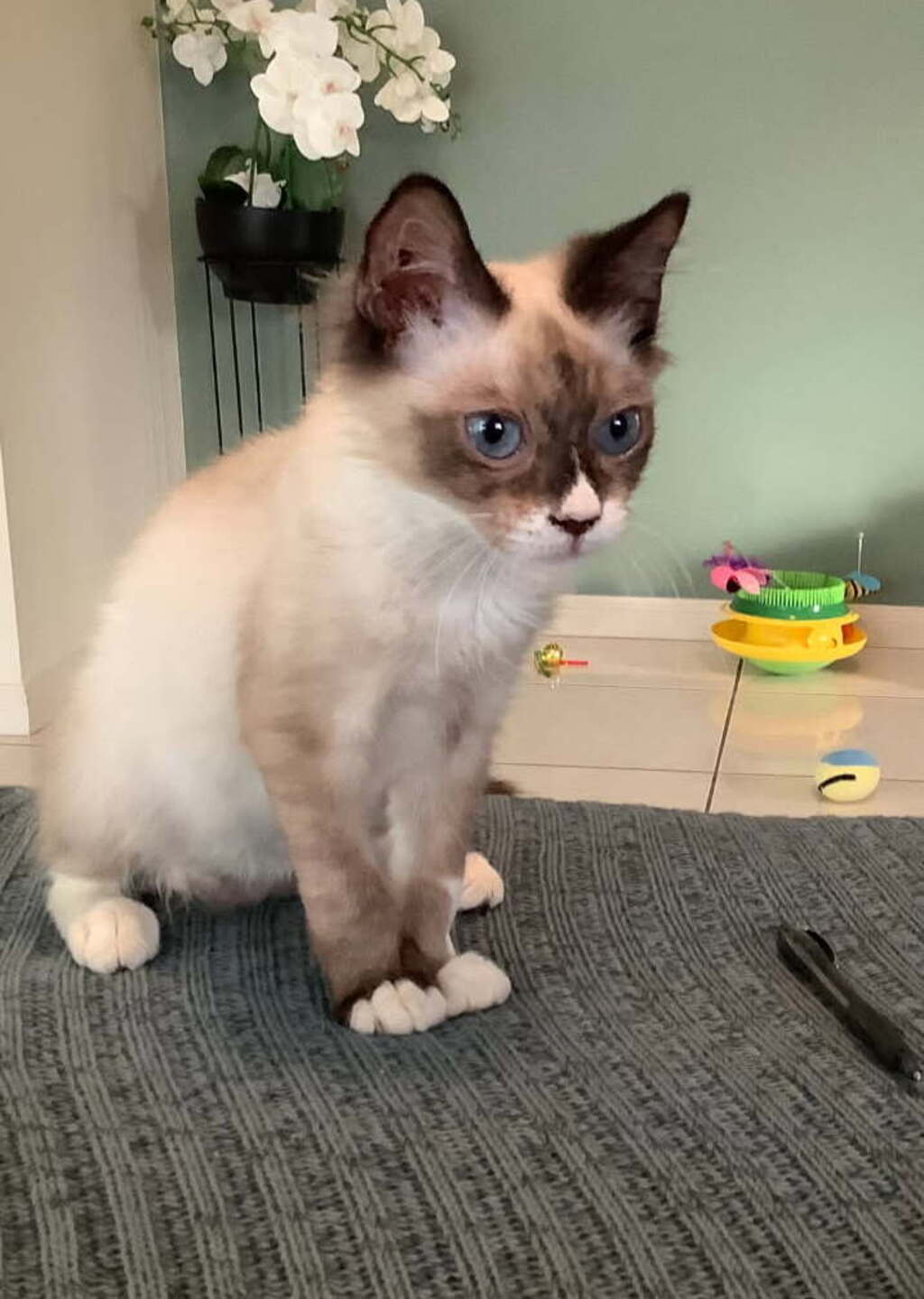 With eyes as blue as a summer sky and a heart full of stardust, Aether is a gentle soul looking for their forever home. This dreamy feline is equal parts curious explorer and cozy cuddlebug. Whether they're chasing sunbeams across the floor or curling up in your lap like a purring cloud, Aether brings a little magic to every moment.