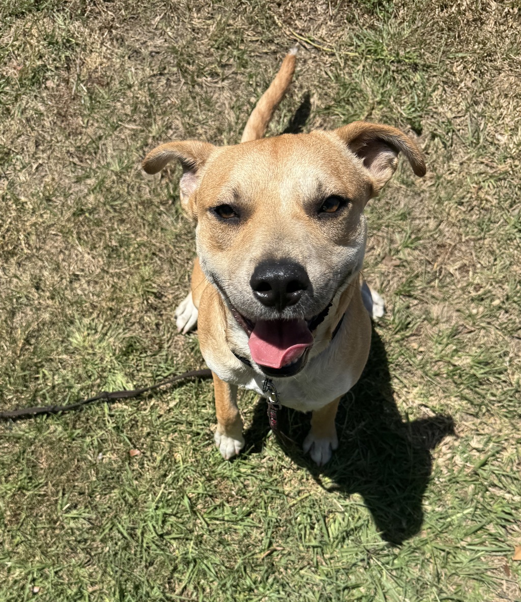 Ducky is a sweet, shy, and sensitive 1-year-old American Staffordshire Terrier x Beagle who's looking for a kind and patient adopter to help him feel safe and loved. He's the kind of dog who blossoms slowly, so he'll need someone who can take the time to let him settle in at his own pace, offering reassurance and understanding along the way.