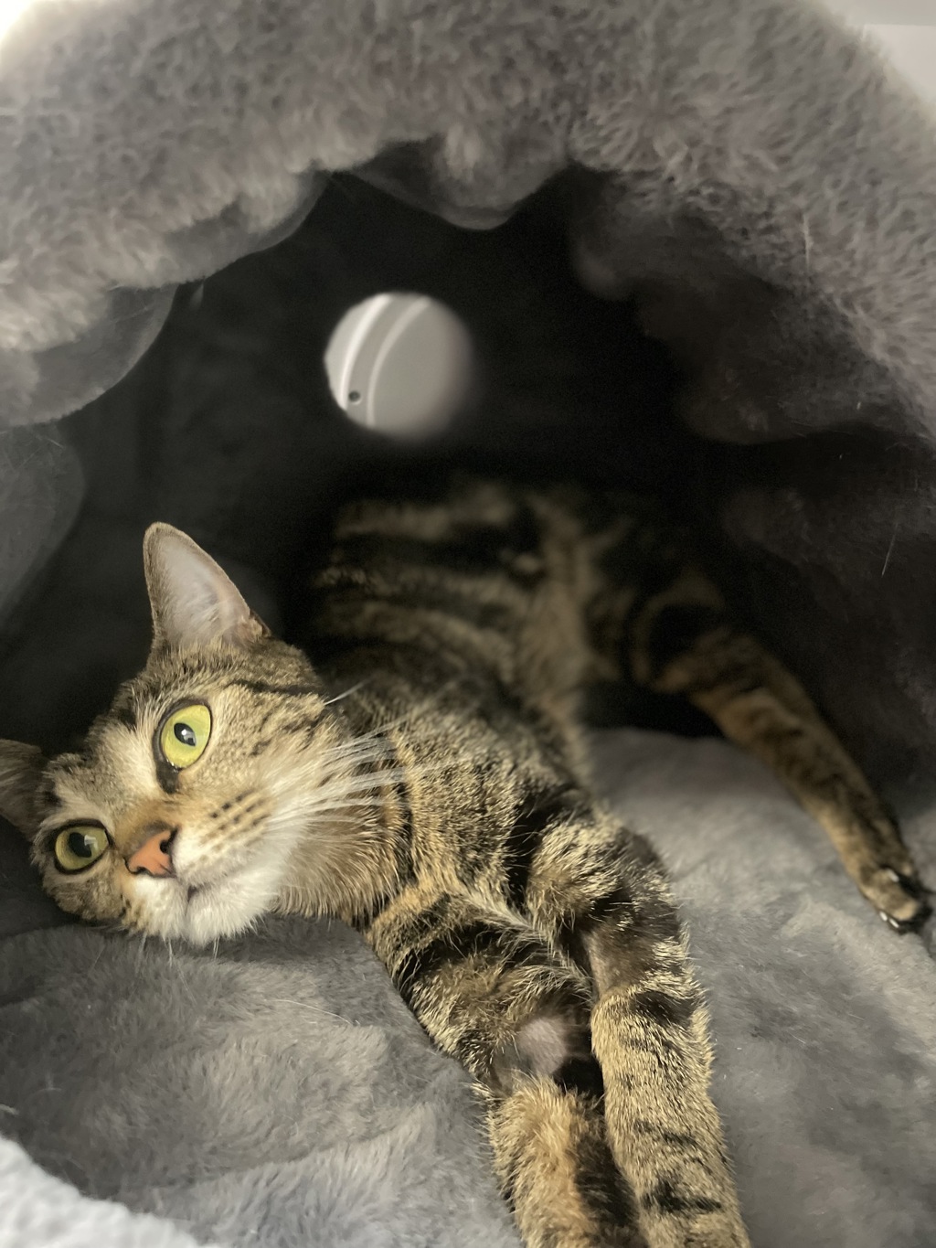 Meet Merlot, a 7-month-old feline with all the charm and depth of a fine vintage. Smooth, languid, and effortlessly graceful, she brings a mellow warmth to every room she enters. Her relaxed nature makes her the perfect companion for quiet evenings and slow mornings. With a gentle purr and soft gaze, Merlot has a way of making you feel right at home. She's friendly without being overwhelming-confident, but never pushy. Whether she's lounging in a sunbeam or curled beside you on the couch, her presence is a soothing delight. Merlot is ready to uncork a lifetime of love-will you be her perfect pairing?