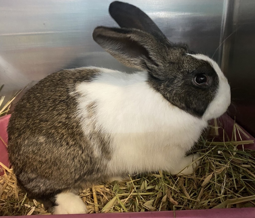 Tad Pohl is a young, confident bunny with a heart full of love and a curious spirit! This little one adores gentle head rubs, hopping around for playtime, and getting to know their human friends. loves fresh veggies and enjoys exploring safe indoor spaces. Whether it's flopping out for a nap or bouncing up for a treat, Tad Pohl is always ready to charm you! He may also enjoy the company of another friendly bunny, pending a meet and greet. Enrichment is key to keeping Tad Pohl happy and engaged-he'll delight in tunnels to dart through, hay-stuffed toys, cardboard castles, and foraging games to tickle his curious mind.