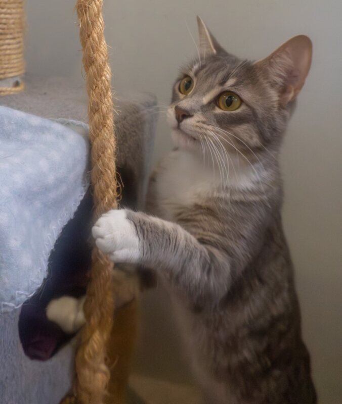 Sox is a gentle cat with a soft spirit and a heart full of potential. At first, she may be a little shy, preferring to observe the world from a quiet corner as she gets to know her surroundings. But with a bit of patience and a calm, loving approach, Sox begins to show her true colors, and what a sweet soul she is.
