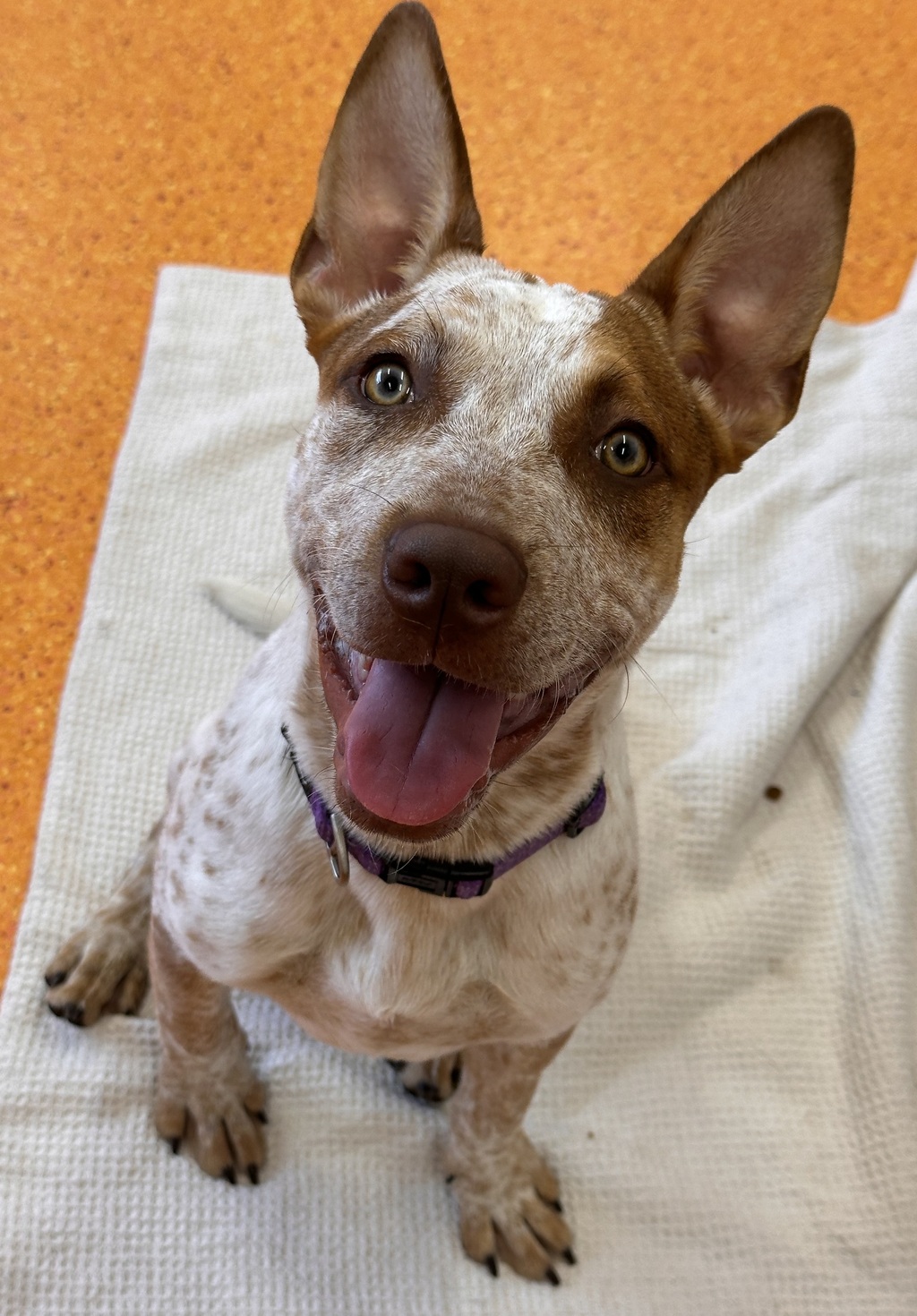 Rusty is a playful, active young dog who's ready to be part of a fun-loving family. He thrives on being included in daily life and will happily jump into your lap for pats and puppy kisses. Smart and eager to learn, Rusty already knows "Sit" and is working on "Down." He'll shine with continued training and enrichment.