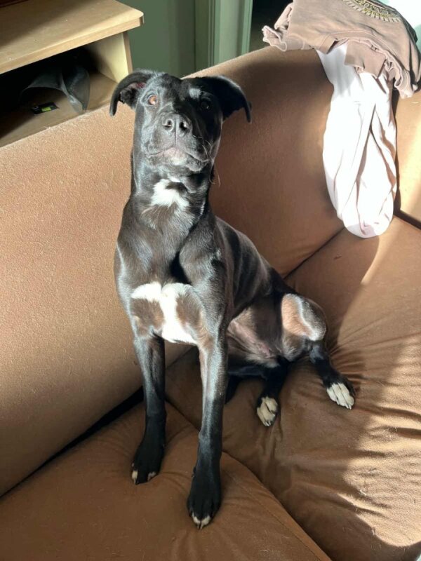 Iva has been living on a property with young children, horses, cats, other dogs and lots of human activity with absolutely no problems. Since having a very unique and life saving surgery, Iva has grown and become a really healthy girl. Her diet needs to be wet and not lumpy although the meat she chews off bones goes down a treat. This lovely girl is quite chilled and super affectionate. For more information about our gorgeous Iva, call her carer Lucy 0429 197 174 or Julie 0403 811 873.