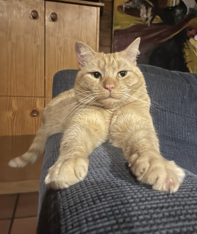 Tonka, a young adult ginger cat, is full of fun and personality. He enjoys chasing toys and playing hide and seek around the house with his people. An affectionate cat, he enjoys the company of both men and woman and will enjoy time on laps and falling asleep on his favourite people. Like many cats, the affection is best when on his terms so Tonka would be best suited to a home without children as they might try to be too affectionate and not give him the space he needs. His previous owners recommended a prescription diet for Tonka after consulting a vet. We continued this special diet in foster care and this has settled his previous tummy issues. He has been able to have occasional non-prescription foods added for variety and his tummy copes well with this. Clever boy! He enjoys his coat being brushed and walks on a harness. He met a medium sized dog in his current foster home and responded well. Tonks is full of character and a robust cat - Tonka Tuff. He offers a lovely balance of energy and fun, as well as sleepy and restful. He's strong but gentle, expressive and communicative. Sounds like the cat for you? Tonka will offer a special connection and companionship for the person of his dreams. Text 0492964 700 or send an adoption application. Tonka is in foster care with AWL NSW Armidale Branch in country NSW. This is not Sydney. We are looking for local adoption or an adopter willing to travel to meet him. DOB: 1/9/20 Adoption cost $180 AWL NSW Rehoming Number R251000222