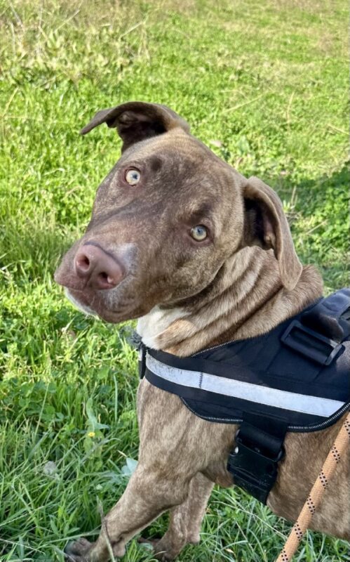 Max is just over 1 years old and is of pure fun, love, and floppy-eared charm! This handsome Staffy cross Bull Arab is the total package: playful, cuddly, smart-and just a little bit goofy in the best way.