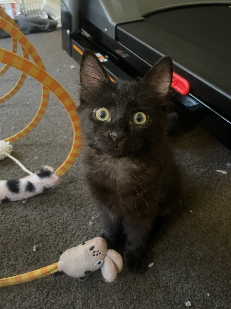 Maali is a tiny, silky-soft black kitten with bright, curious eyes and a heart full of gentle affection. He’s already learned how to balance playfulness with calm sweetness. One moment he’s pouncing on a feather toy or zooming down the hallway, and the next he’s curling up quietly in your lap, purring as if he’s known you forever.