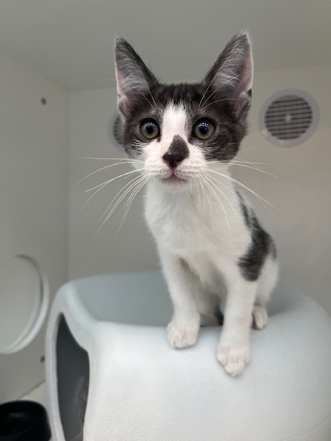 Hi there, I’m Makka Pakka, a male Domestic Short Hair kitten. I’m 2 months old and full of curiosity. My energy level is average: I love gentle play, exploring new corners, and then curling into a warm lap for quiet cuddles. I’m friendly, affectionate, and I greet people with purrs. I have no known issues with children, so I’d be a wonderful fit for a family that can give me patience and daily companionship. I’m already litter trained and I’m learning to share with others. I’ll bring sunshine to your days with my playful antics and soft purrs. If you’re ready for a loving, adaptable tiny friend who will grow up by your side, I’d love to meet you. Please contact the shelter to adopt Makka Pakka today.