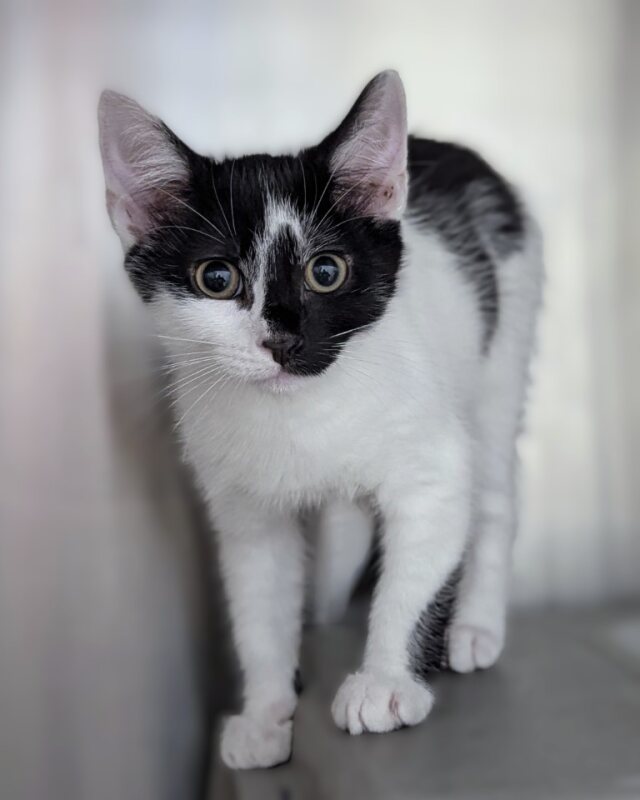 Hi, I'm Jezza. I'm a male kitten with a Domestic Short Hair coat and an average energy level. Age: 2 months. I love sunlit windows, soft blankets, cozy naps, and playful explorations. My favorite moments include chasing feather toys, exploring cardboard tunnels, and getting gentle pets that make me purr. I’m curious, affectionate, and eager to learn. Best with Children Aged: No known child related issues. I’m looking for a patient home where I can settle in at my own pace, with kind humans who will give me space as I grow and plenty of gentle play. I get along well with calm, respectful people and I’m excited to be your new cuddly companion, ready to bring warmth, whiskers, and lots of purrs into your life. If you’re searching for a sweet, adaptable young cat to grow with, I’m your guy.