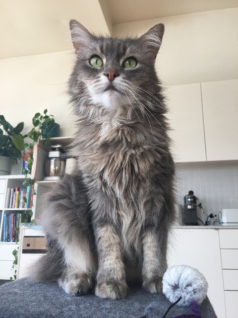 She expertly senses when you’ve sat down and appears, ready for snuggles on your lap or next to you if it’s a hot day. If she’s deep in slumber, she will wake to a call if it means she can come and sleep on you instead.