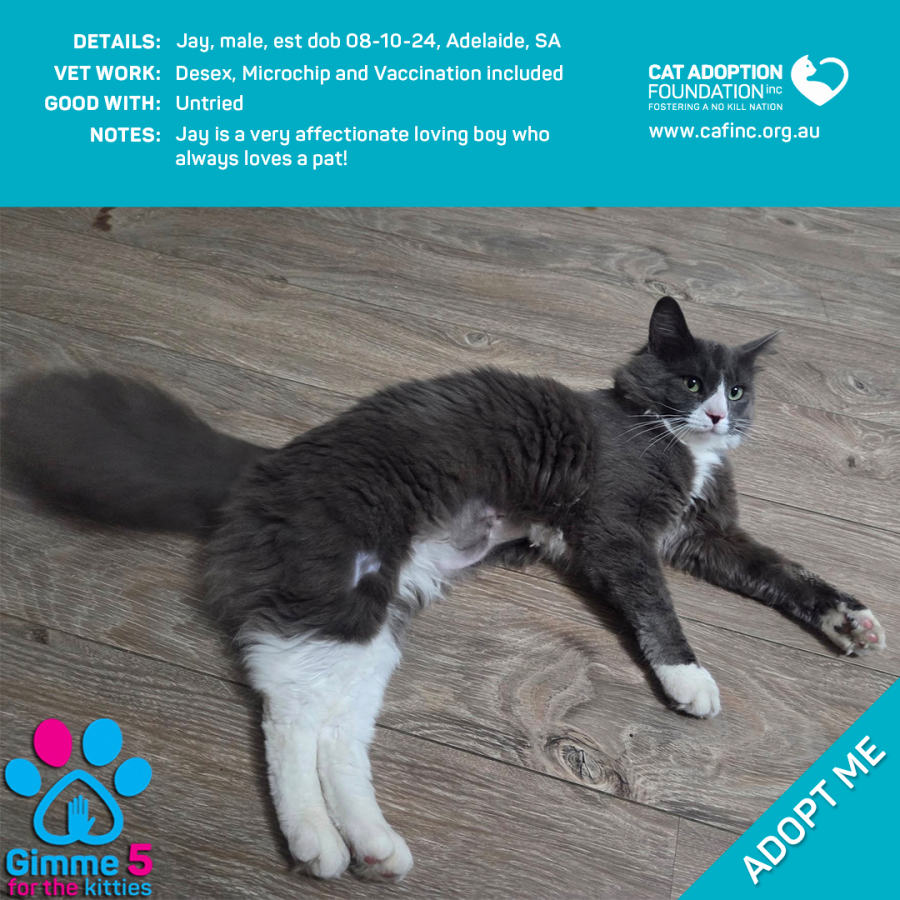 Donate to Jay at Cat Adoption Foundation Incorporated via Shout