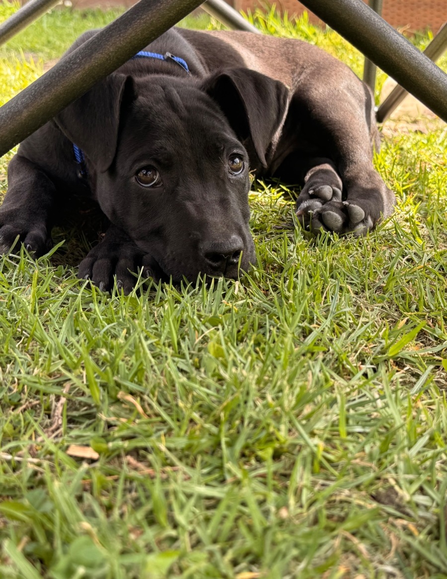 Say hello to Millhouse. The cheeky black Staffy mix with a big heart and even bigger energy! This little guy loves to wrestle and play with the host dogs in his foster home. He’s full of puppy fun and isn’t afraid to dive right into the action!