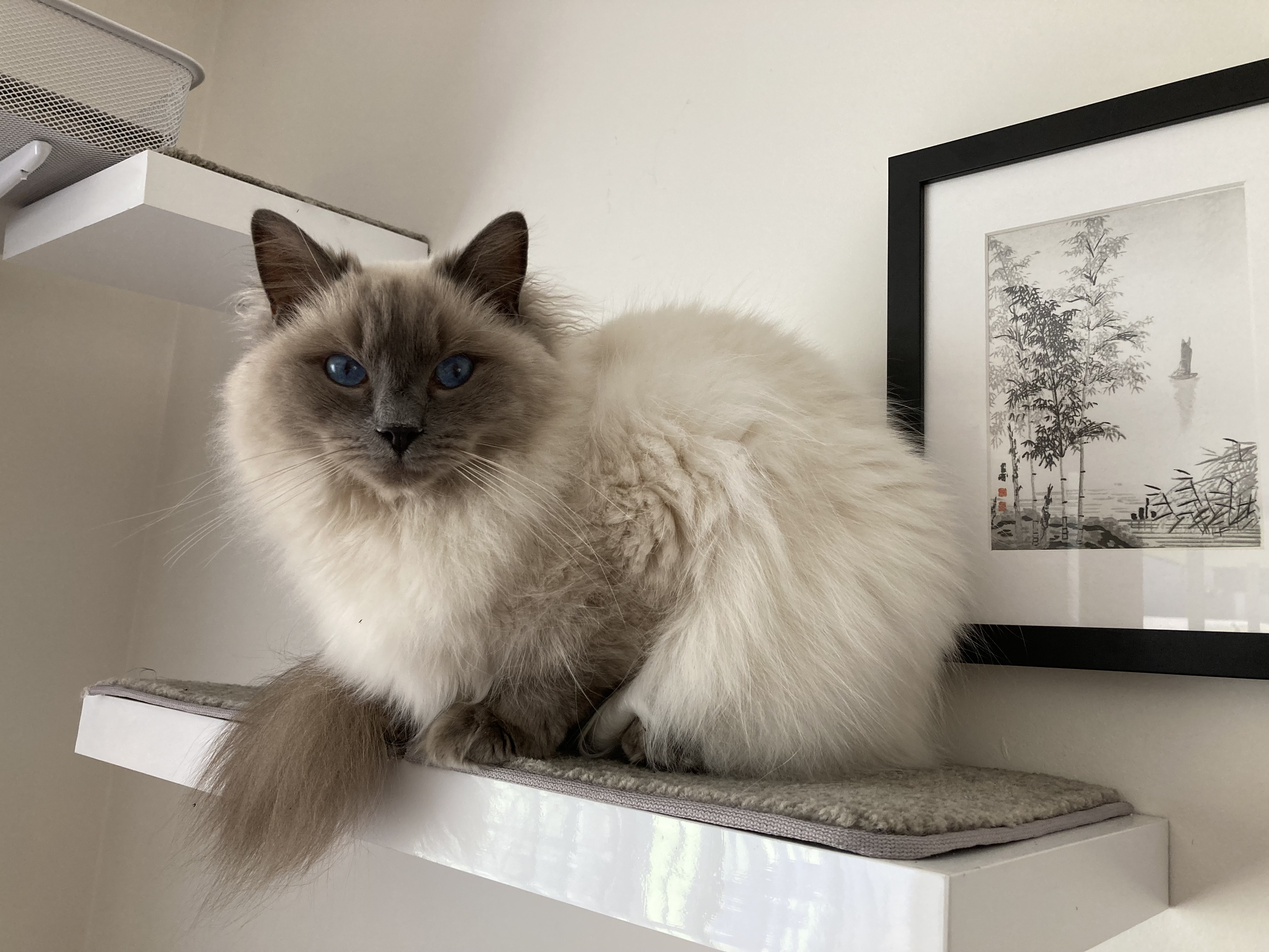 Pepper’s daily vibe is one of calm, companionable supervision; he loves to follow his people around in the morning, making sure everything is running smoothly before settling down for a long, luxurious nap in his favourite armchair. What makes us smile every time is his hilarious tradition of helping with the washing—he comes running the moment the bed sheets are changed, just so he can tunnel and hide underneath them!