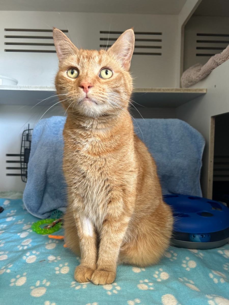 Acorn is a handsome, large ginger boy with a heart as warm as his coat. He’s a gentle, easygoing cat who adores human interaction — whether that’s a cuddle, a pat, or simply hanging out nearby to keep you company.