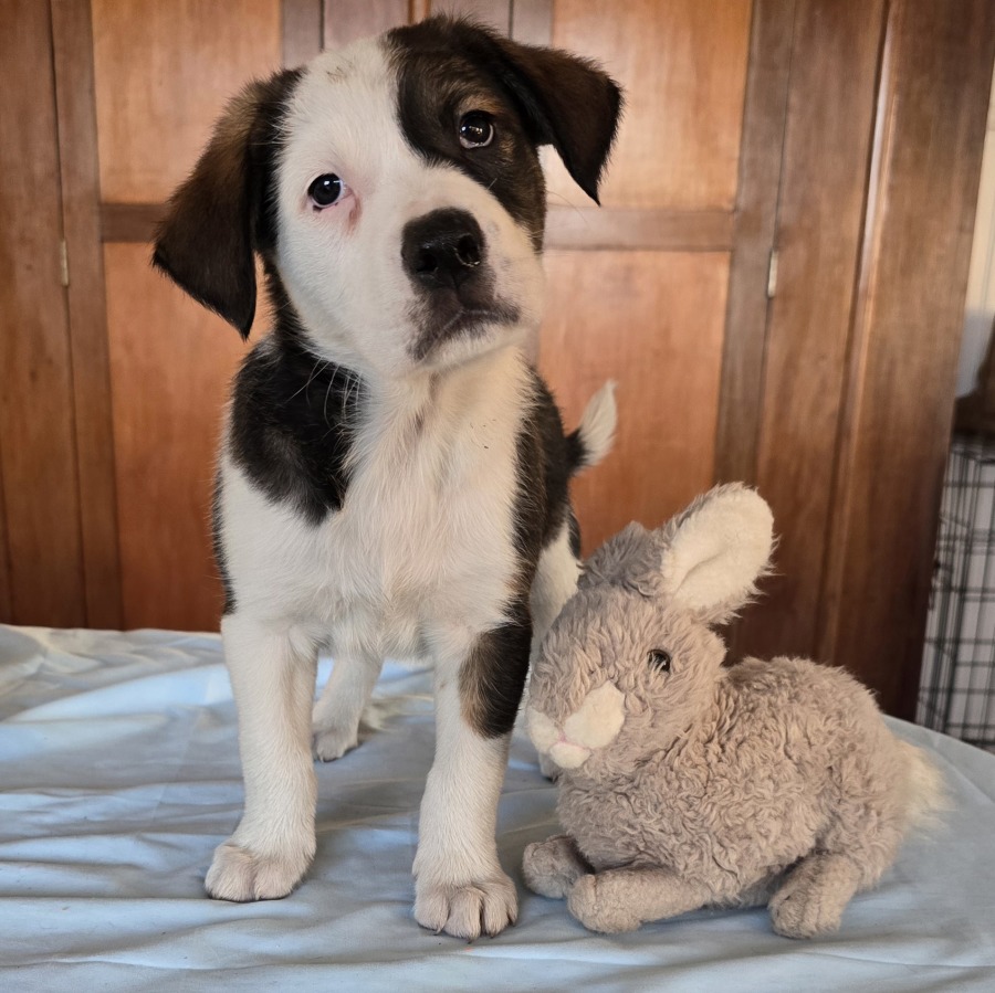 Rescued alongside their brave mum Buffy, these half-border-collie babies are bursting with personality, intelligence and charm. Each one has inherited Mum’s sweet, loyal nature and Dad’s good looks (and fluff). Whether you’re after a goofy sidekick, a gentle snuggler, or an adventurous explorer, this crew has you covered.